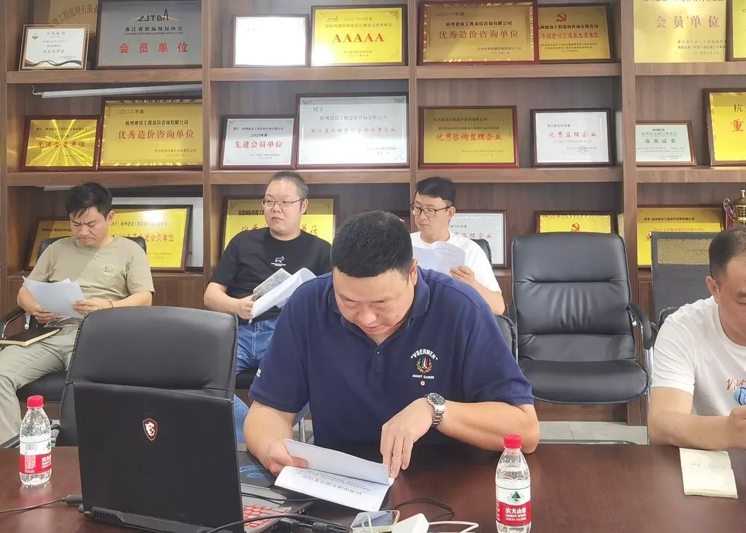 会议首先宣贯了杭州市城乡建设委员会下发的关于开展全市建设系统2024年“安全生产月”活动的通知,要求各总监做好施工现场安全生产。